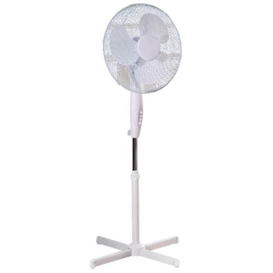 The Challenge 16-inch pedestal fan features three speed settings and an adjustable tilt function, allowing you to direct airflow as needed. It's suitable for both home and work environments. The fan has a sleek chrome finish, stands freestanding, and has a cord length of 1.8 meters, operating at a power of 45 watts.