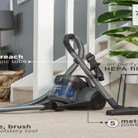 Russell Hobbs Cylinder Vacuum Cleaner ATLAS 2 PET 2.5 Litre Grey & Purple with 3 in 1 Multi-Tool, Triple Dust Lock 700W High Efficiency Motor, PET Turbo Tool, 2 Year Guarantee RHCV3601